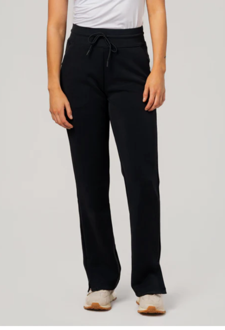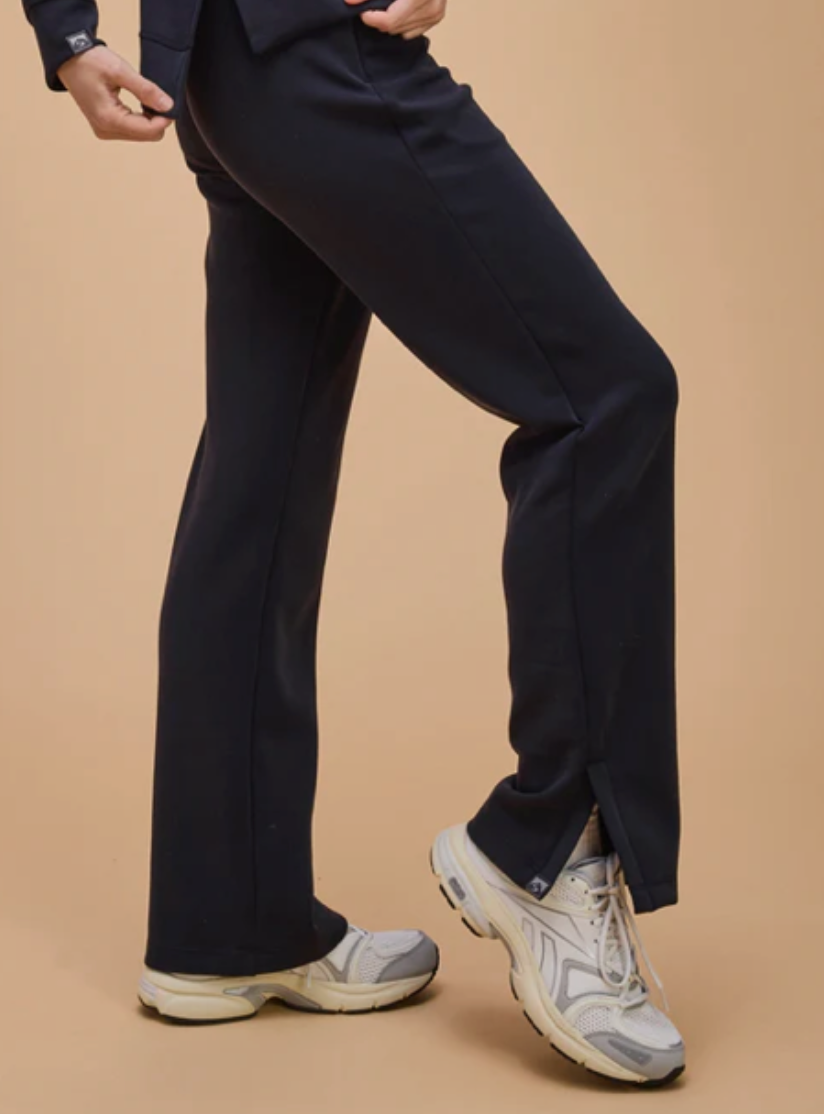 These pants do it all—stretchy enough for errands, stylish enough for actual plans. The ribbed hem with a sleek side slit adds just the right amount of attitude, while the adjustable drawcord waist keeps things comfy. Zippered pockets? Check. Go ahead, wear them three days in a row. We won’t tell.
