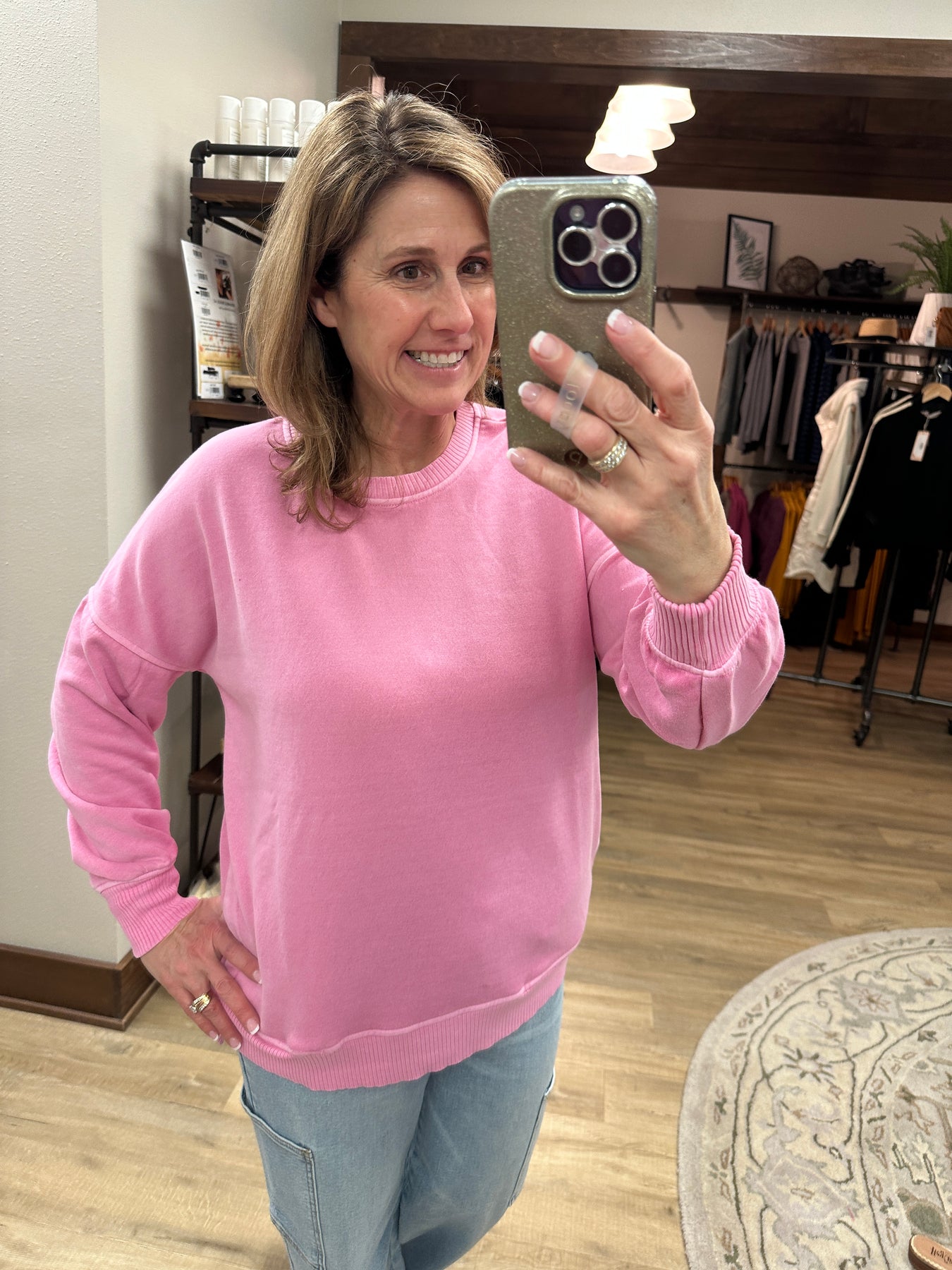 Hi Lo Hem Pullover w/pocket-Lt pink