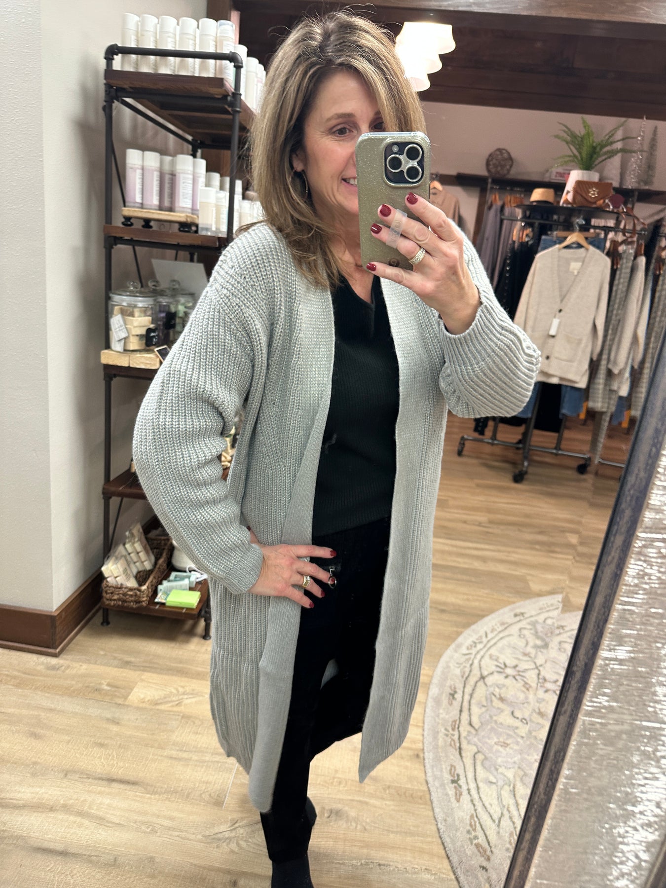 Metallic Silver Long Cardigan