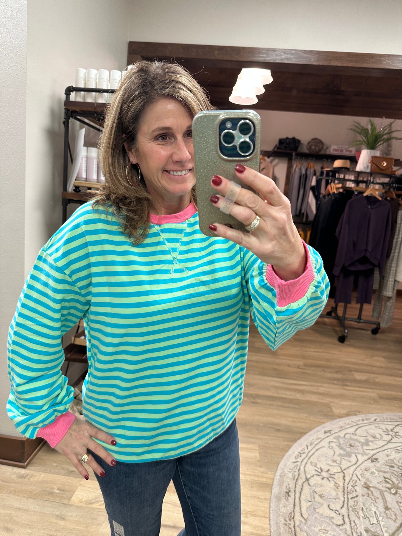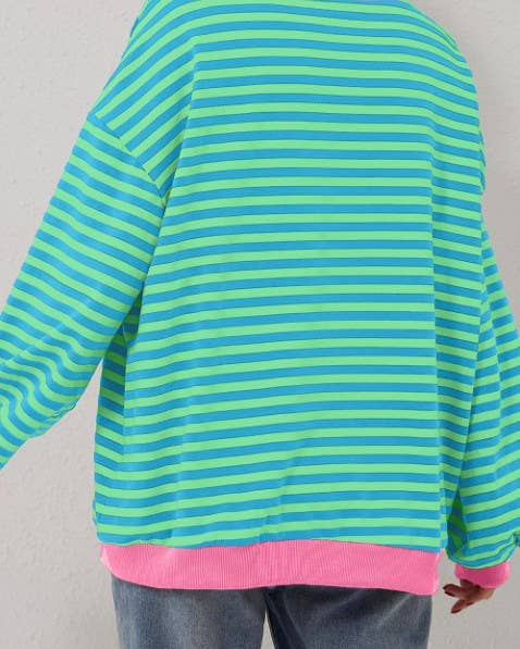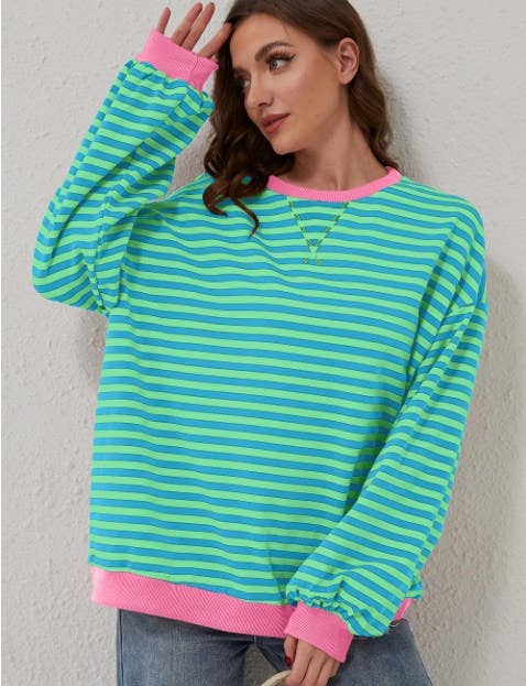 This womens sweatshirt is a classic piece with timeless striped pattern The oversize style and drop shoulder design give a casual slouchy vibe. The contrast trim adds a pop of color and vision interest to this pullover. Very relaxed fit and comfy for different body shapes