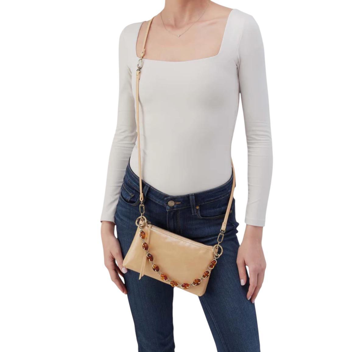 An iconic and convertible HOBO style that can be worn three ways: crossbody, baguette bag and wristlet.